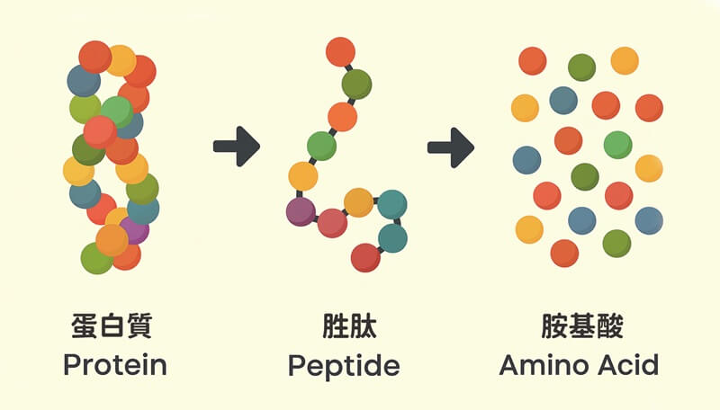 發布單位: 衛生福利部國民健康署-社區健康組A:食物中的蛋白質需經消化分解為胺基酸,才能被身體所吸收利用,而所吃進去的蛋白質其實並不完整能被吸收,蛋白質的消化從胃部開始,可透過酵素蛋白酶將胜鍵水解及消化,分解為雙肽與三肽及其游離胺基酸,經由小腸細胞將其分解成胺基酸,然後送至微血管,經肝門靜脈運送到肝臟與人體全身之所需,整個過程時間約需2~5個小時(依食物性質不同而有時間差異)。而晶準生技之高純度胺基酸營養液為液態小分子胺基酸,因而不需經由消化分解過程,約30分鐘即可被人體快速吸收。